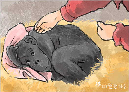 노쇠한 침팬지 마마는 죽음을 앞두고 있었습니다. 사람과 같이 마마의 얼굴에는 자기 죽음을 아는 것처럼 수의사들이 주는 음식과 물까지 거부하며 죽음을 기다리는 듯했습니다. 그런데 그 소