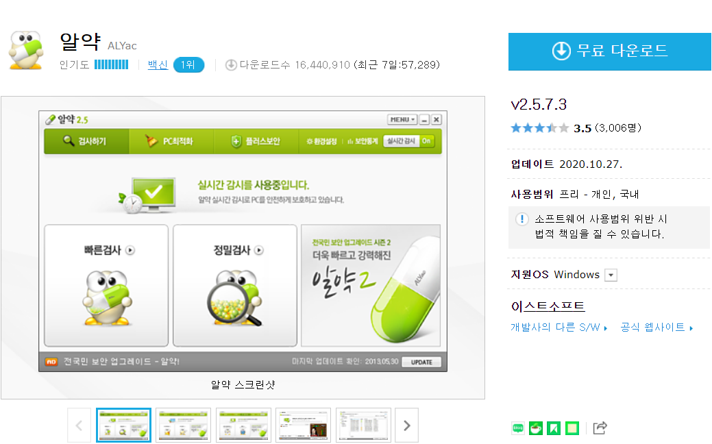 알약(ALYac) 다운로드는 여기를 참조하세요.