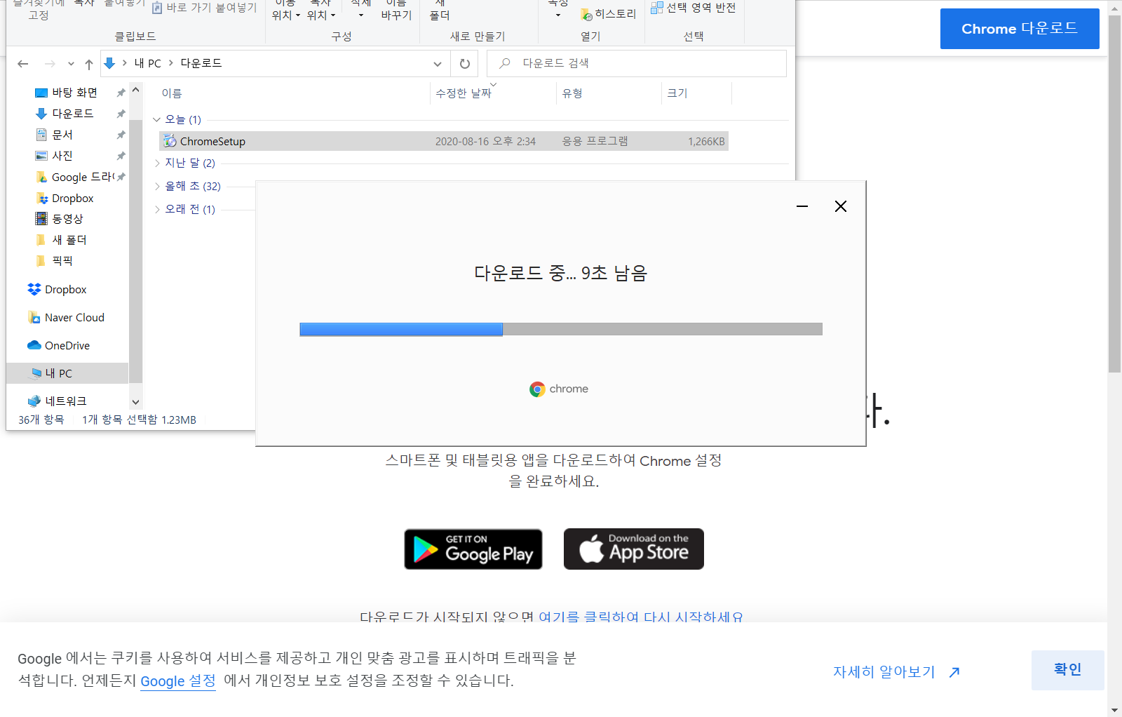 구글 크롬(Chrome) 브라우저 다운로드가 완료되면 닫아주시면 됩니다.