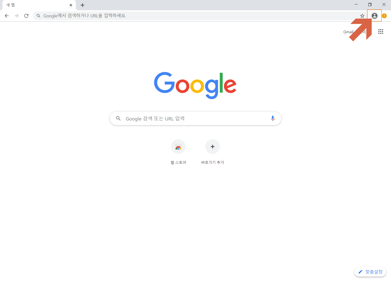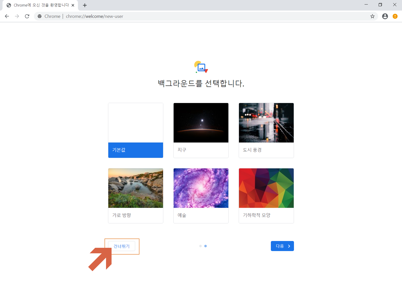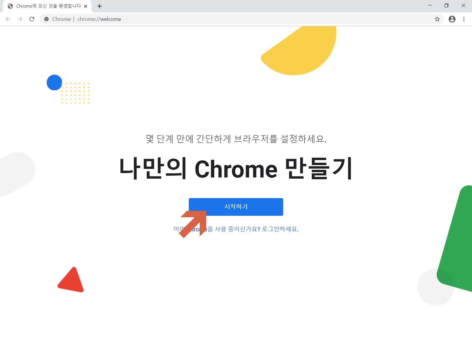 구글 크롬(Chrome) 브라우저가 실행되었습니다. <시작하기>를 누릅니다.