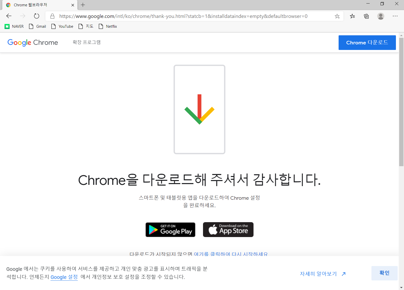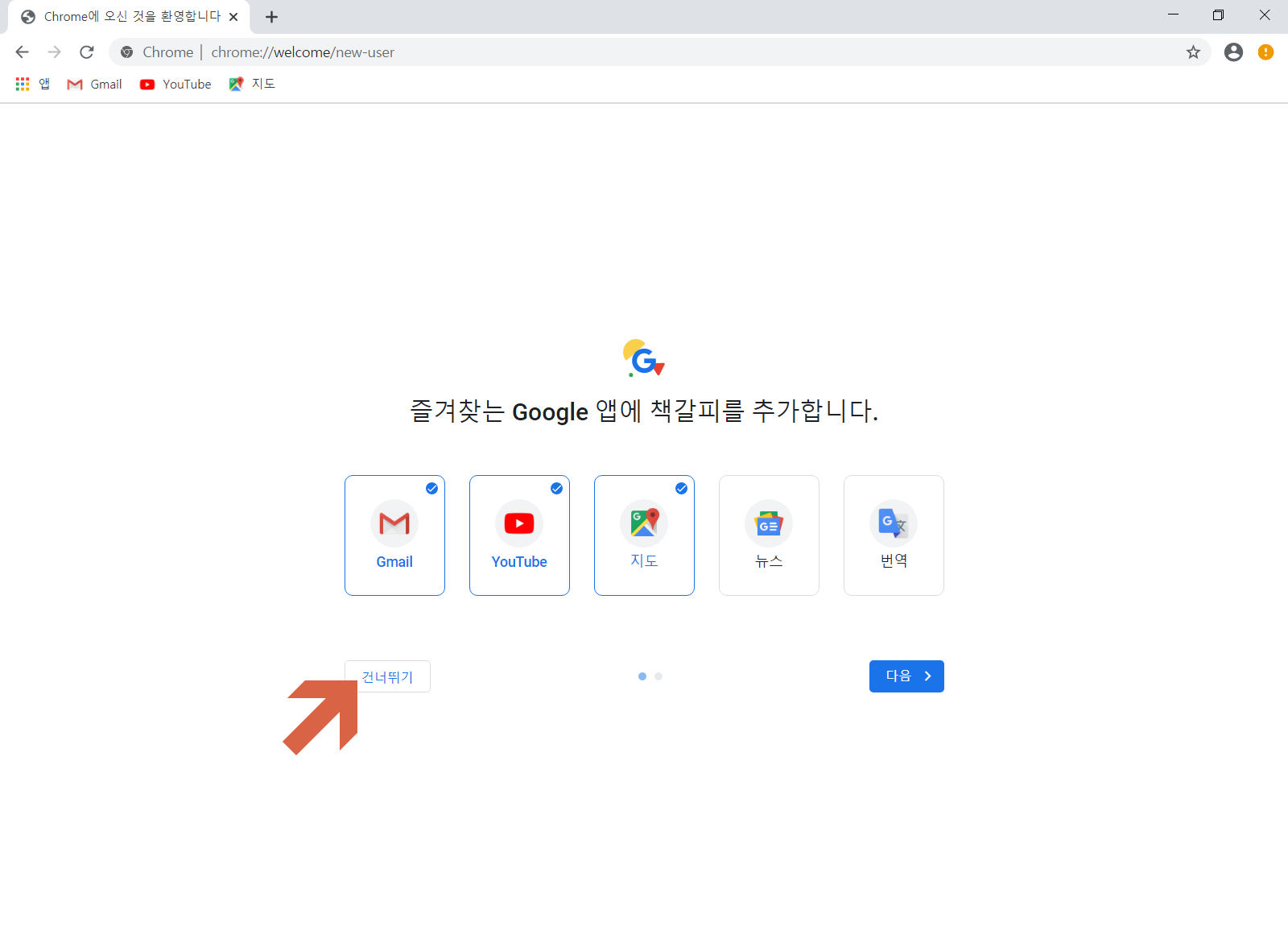 구글 크롬(Chrome) 브라우저 설정이 완료되었습니다.