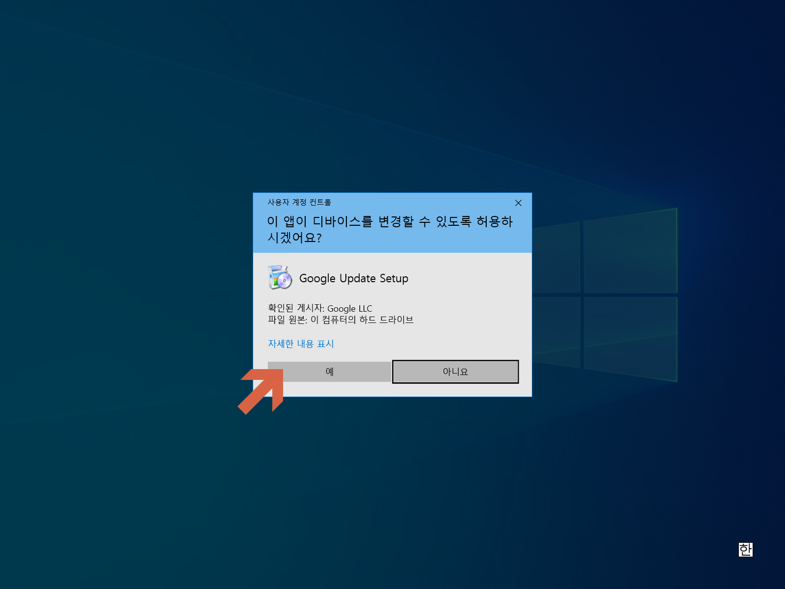 <예>를 누릅니다.