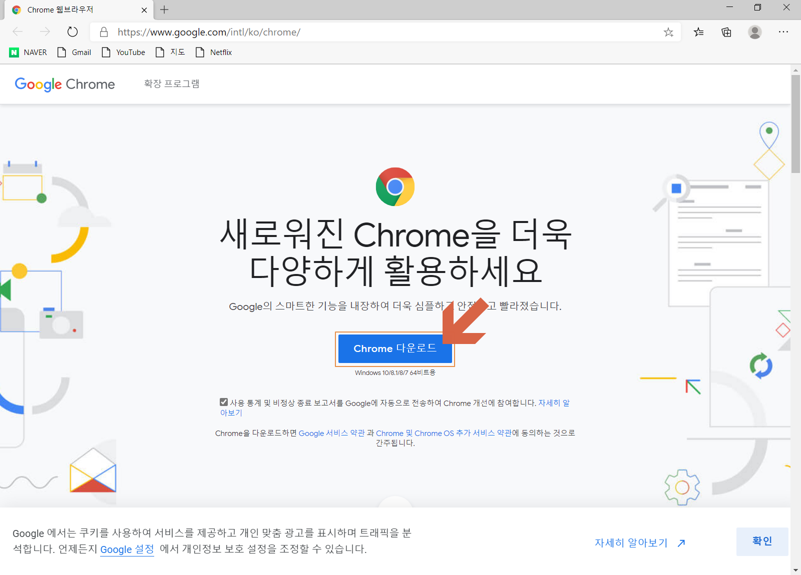 구글 크롬(Chrome) 브라우저 다운로드를 하시려면 여기를 참조하세요.