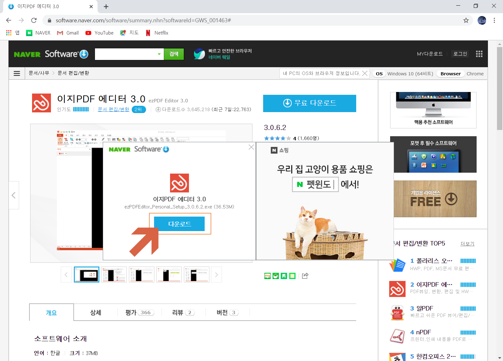 <다운로드>를 누릅니다. 이제 이지PDF 에디터(ezPDF Editor) 설치 프로그램이 다운로드가 시작됩니다.