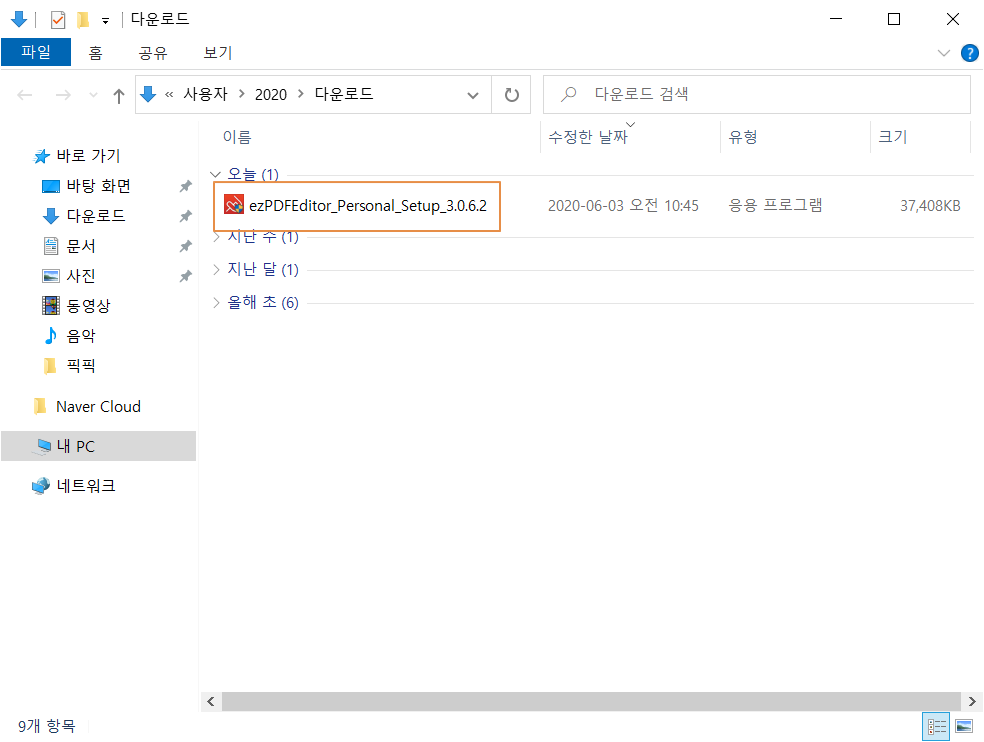 다운로드 경로로 이동하시면 이지PDF 에디터(ezPDF Editor) 설치 프로그램이 보입니다. <실행>을 합니다.