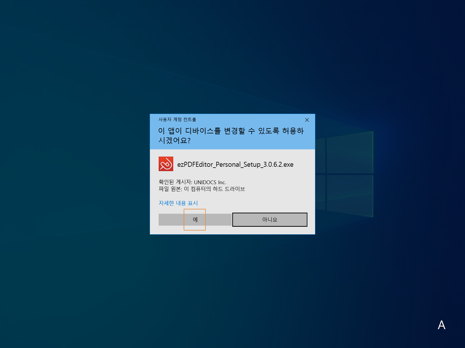 다운로드 경로로 이동하시면 이지PDF 에디터(ezPDF Editor) 설치 프로그램이 보입니다. <실행>을 합니다.