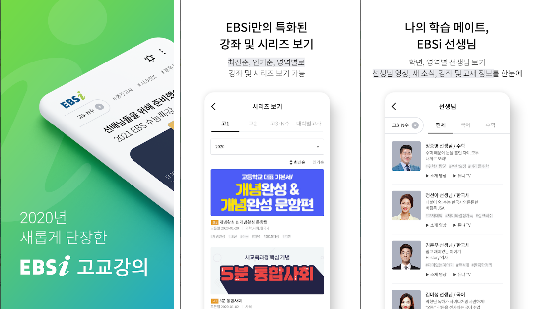 한국교육방송공사 제공 고교강의 앱인 EBSi 고교강의는 맞춤 학습 환경에 최적화되었으며, 하루 10분 Speaking을 통한 하루 10분 자투리 시간을 활용하여 영어 Speech 능력 향상을 할 수 있는 기능과 학습에 필요한 소식이 가득한 나의 소식을 통해 강좌 관련 알림, 나의 상담/문의/이벤트 당첨 알림, 강좌/교재/선생님/이벤트 오픈 및 입시정보(풀서비스) 안내, EBSi의 신규 서비스, 혜택 및 광고 정보 서비스 제공하고 있습니다.