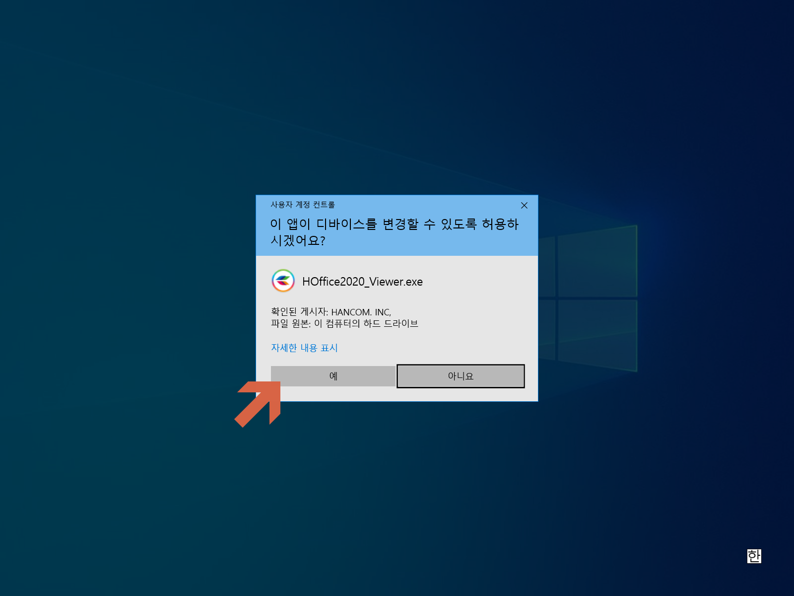 다운로드 경로 폴더로 이동하여 한컴오피스 2020 뷰어 설치 파일을 실행합니다.