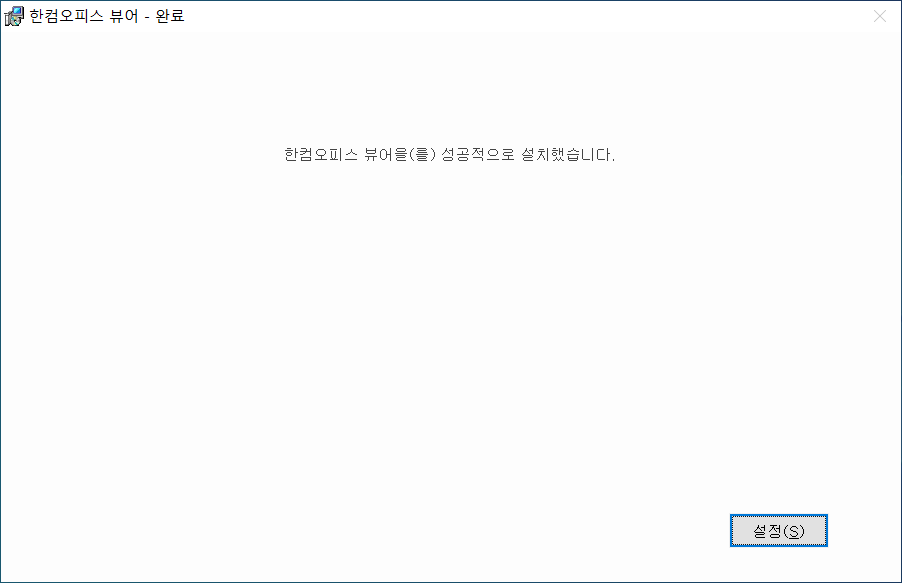 한컴오피스 뷰어 설치 완료되었습니다. <설정>을 클릭합니다.