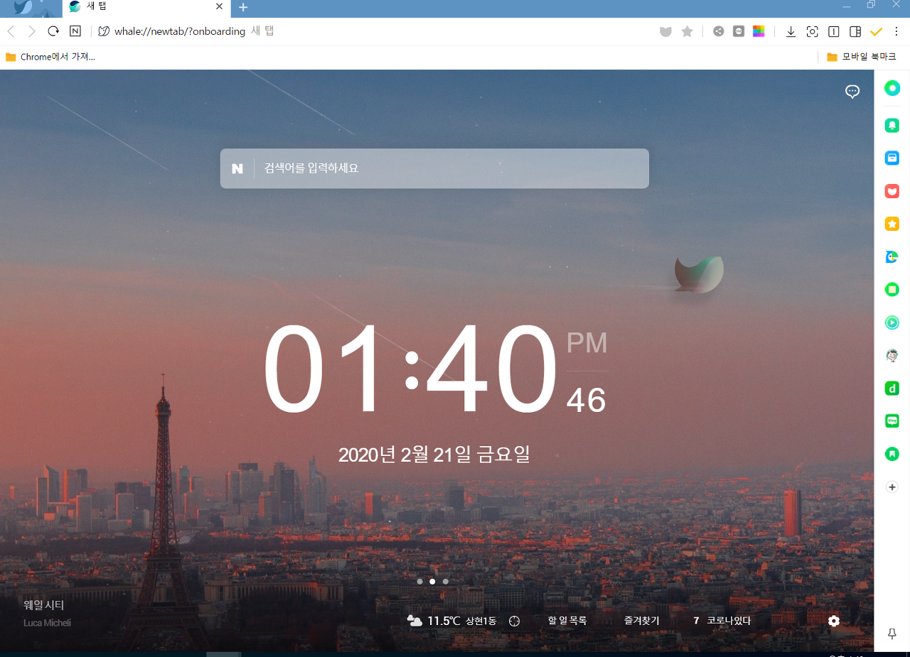 네이버 웨일도 마찬가지로 크로미움을 기반으로 만들어졌기 때문에 크롬과 유사한 기능도 갖추었지만 네이버 서비스와 연동을 할 수 있도록 구성되어있어, 네이버 서비스를 더 많이 활용한다면 크롬이나 엣지보다도 유리하다고 생각됩니다.
