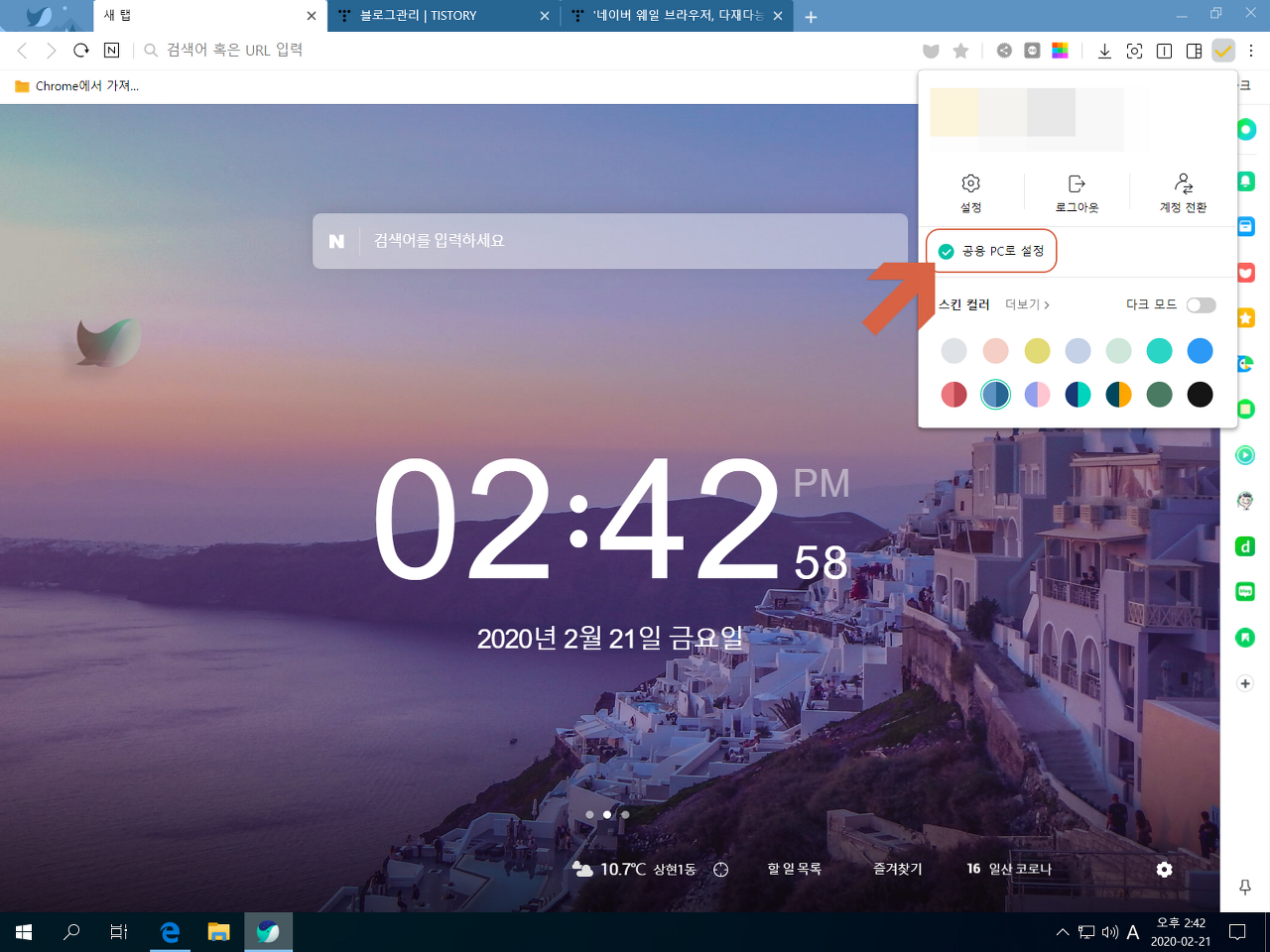 로그인이 완료되었습니다. 설정이나 혹은 다른 아이디로 계정 전환을 할 수도 있으며, 쉽게 사용할 수 있도록 <공용 PC로 설정>이나 <다크 모드(야간모드)> 설정도 있습니다.