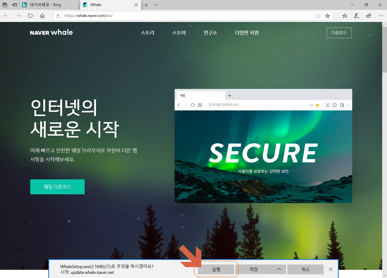 네이버 웨일 브라우저를 다운로드하시려면 여기를 참조하세요.