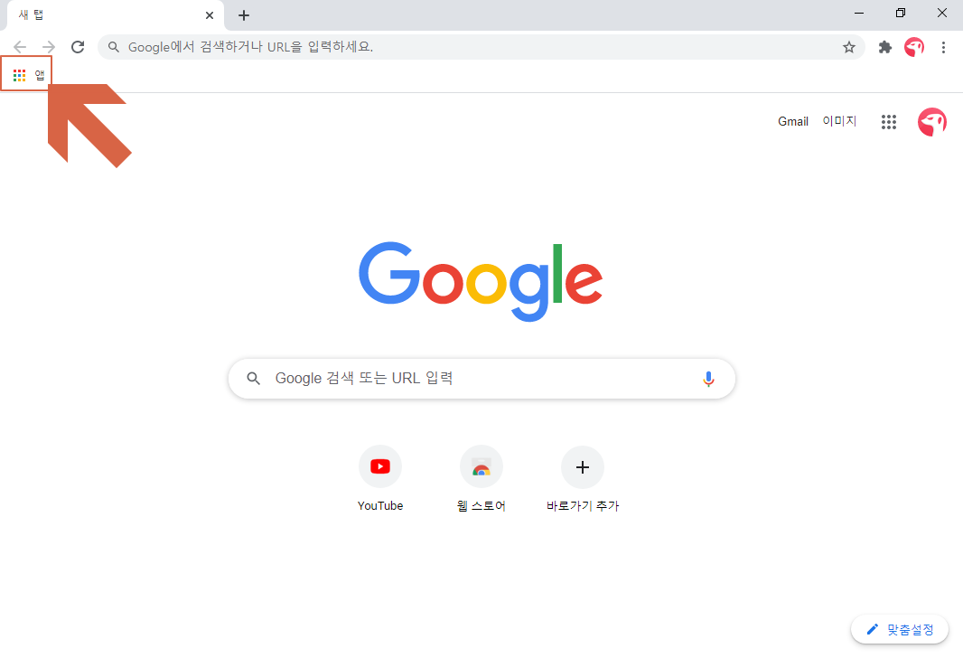 우측 상단의 화살표가 있는 <Google 앱>을 누릅니다.