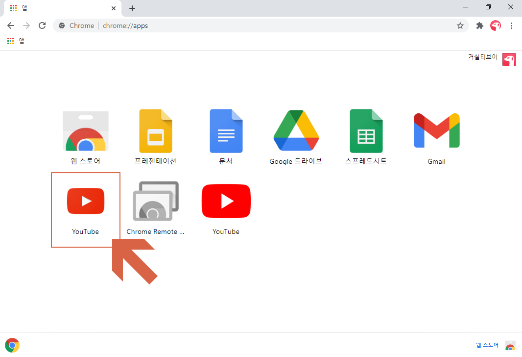 바탕화면으로 이동하면 유튜브 바로가기 아이콘이 생성되었습니다.