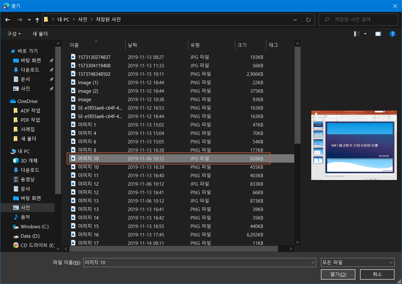 해당 파일을 선택 후 <열기>를 누릅니다.
