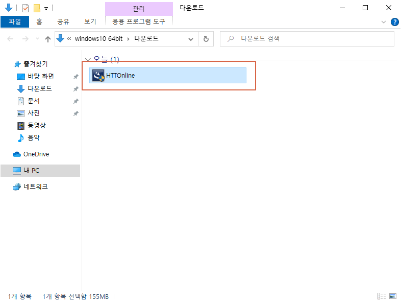 다운로드 폴더로 이동하여 한컴 타자연습 설치 파일을 실행합니다.