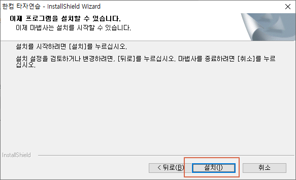 <완료>를 누릅니다. 한컴 타자연습 프로그램 설치가 완료되었습니다.