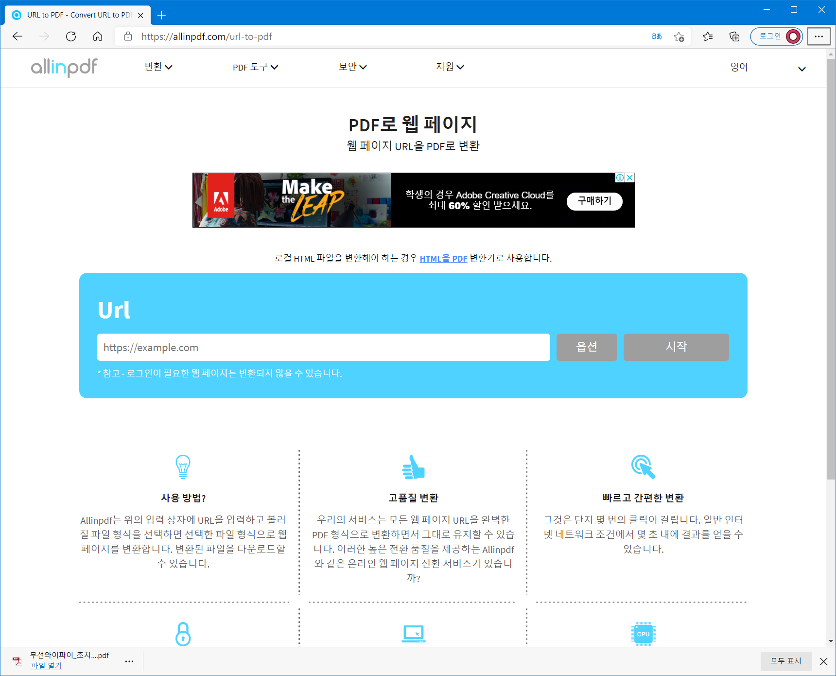웹 페이지 PDF 저장, 웹 페이지 URL을 PDF로 변환