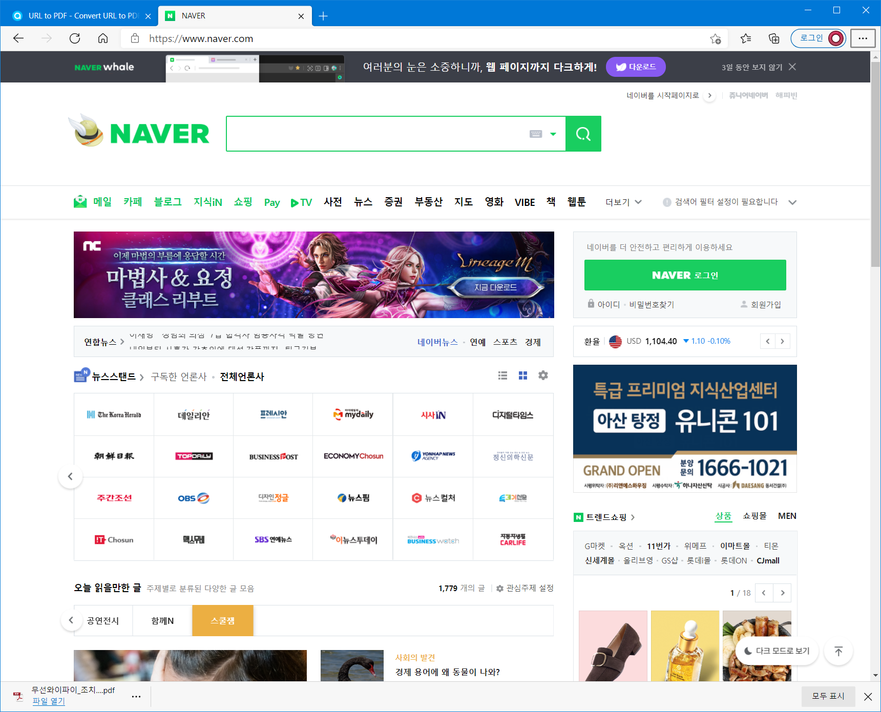다운로드 폴더로 이동하면 www.naver.com.pdf 파일을 확인할 수 있습니다.