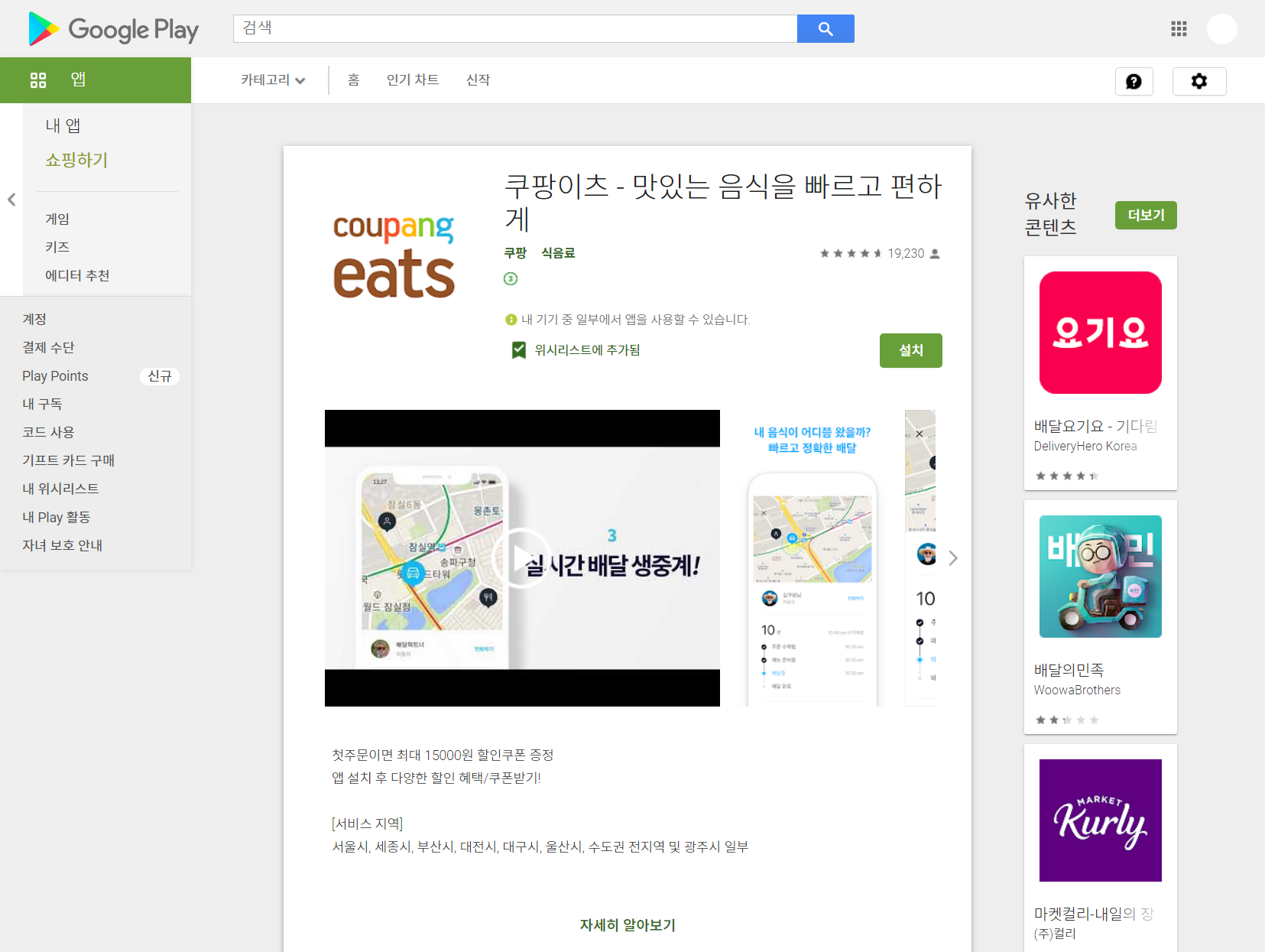 쿠팡이츠 - 맛있는 음식을 빠르고 편하게 - Google Play 앱