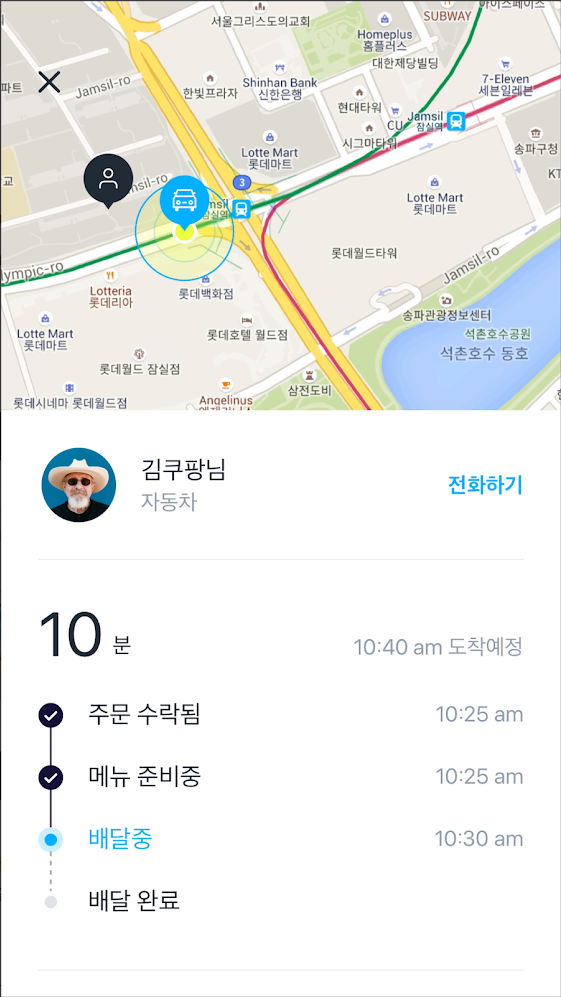 주문한 음식 픽업부터 배달 현황을 실시간으로 확인할 수 있어요!