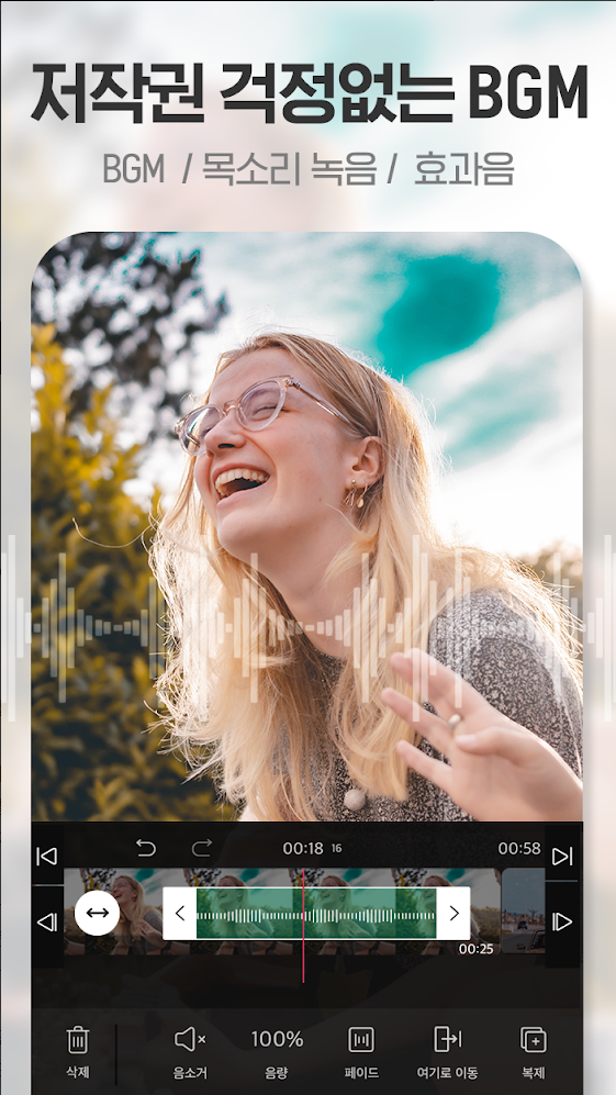 + 오디오 페이드인/아웃 효과로 프로페셔널하게 마무리하세요.