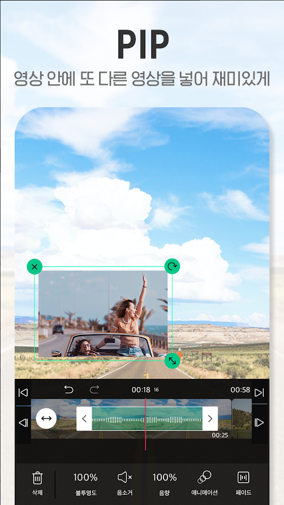 + PIP기능으로 영상 위에 영상이나 사진, GIF를 올리세요.