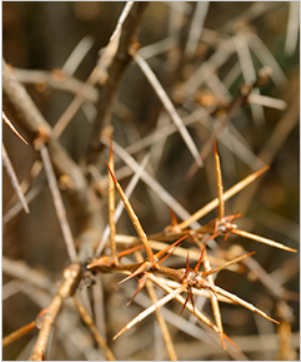가시나무에 걸려 있는 양털들을 새들이 물고